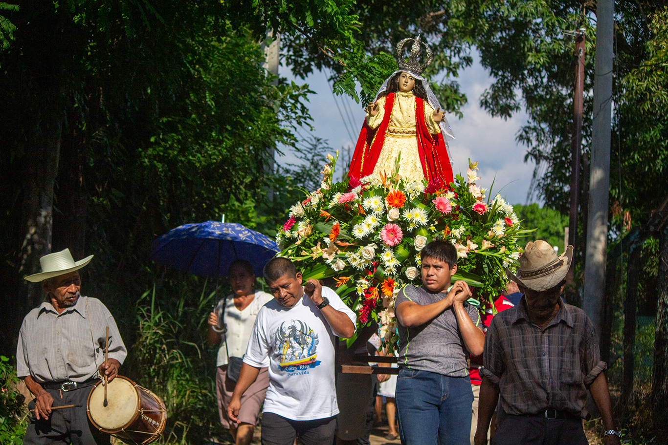 El Común de Izalco aceptó la condición y fue así como se creó la tradición de procesionar a la Virgen y dejarla desde el 8 de agosto hasta el 16, para dar cumplimiento. Todavía hacia los años ochenta del siglo pasado tras la Procesión, los asistentes regresaban a la sede de la cofradía ya que los Historiantes que habían acompañado a la Señora, hacían la Danza ante todos los presentes y se acostumbraba a repartir chilate; este reparto todavía se acostumbra, pero se realiza previa procesión. Los Historiantes volvían a danzar el 16 de agosto cuando la Virgen tras respectiva Procesión, era nuevamente procesionada desde el Templo Parroquial hasta la sede de su cofradía.