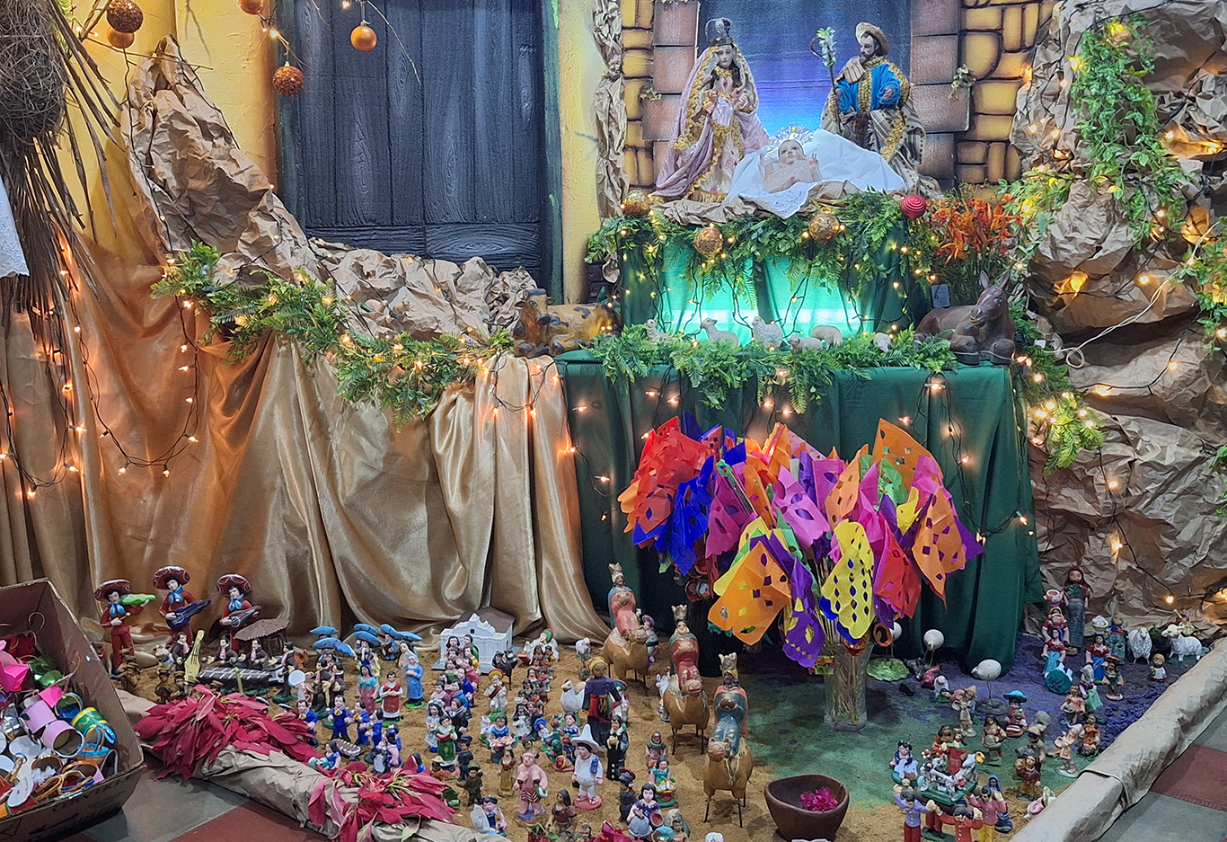era de 6 metros de largo por 3 metros de ancho. Le preguntamos sobre los materiales empleados: “Mire, el Nacimiento de este año, lleva papel, cartón,