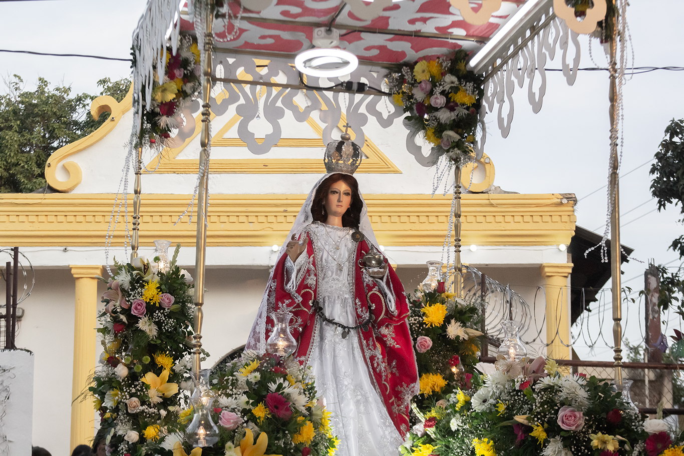 Frente al singular camarín, la “Doctora” luce sus mejores galas en su Altar de veneración; es difícil cuantificar el entrar y salir de sus devotos al interior de la ermita. Hacen sus peticiones por sus hijos enfermos o un ser querido, colocan sus velas con mucho amor y fe. Vemos mucha devoción y constatamos el tremendo valor religioso de esta Imagen, visitada durante todo el año por las mismas razones. En las afueras de estos decenarios recintos, los cohetes de vara invitan a la fiesta que es de todos y para todos, sin ninguna distinción. Amanece el día 15. Son las 5 de la tarde y se ha llegado la hora. Los feligreses se reúnen a la espera que se abran las puertas de la ermita. Sale la “Doctora” en su anda procesional para visitar a todos los izalqueños que esperan su paso hasta retornar en horas de la noche. El día 16 a tempranas horas, se realiza la Santa Eucaristía en su honor. Así las cosas.