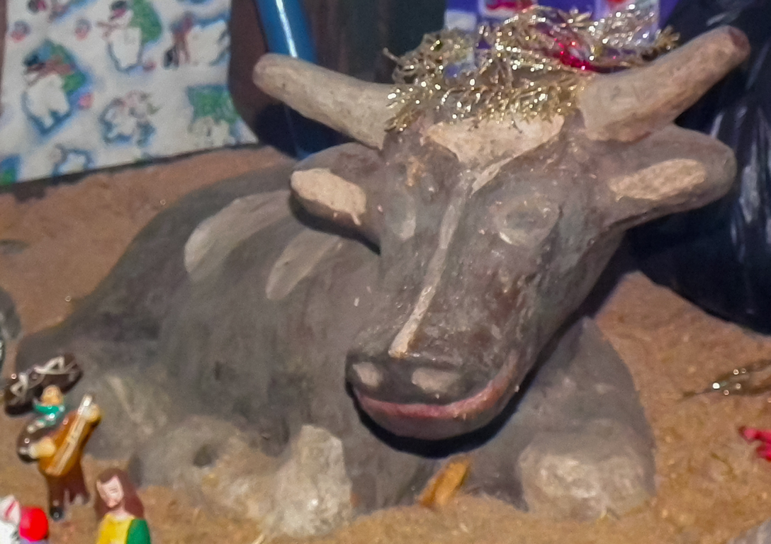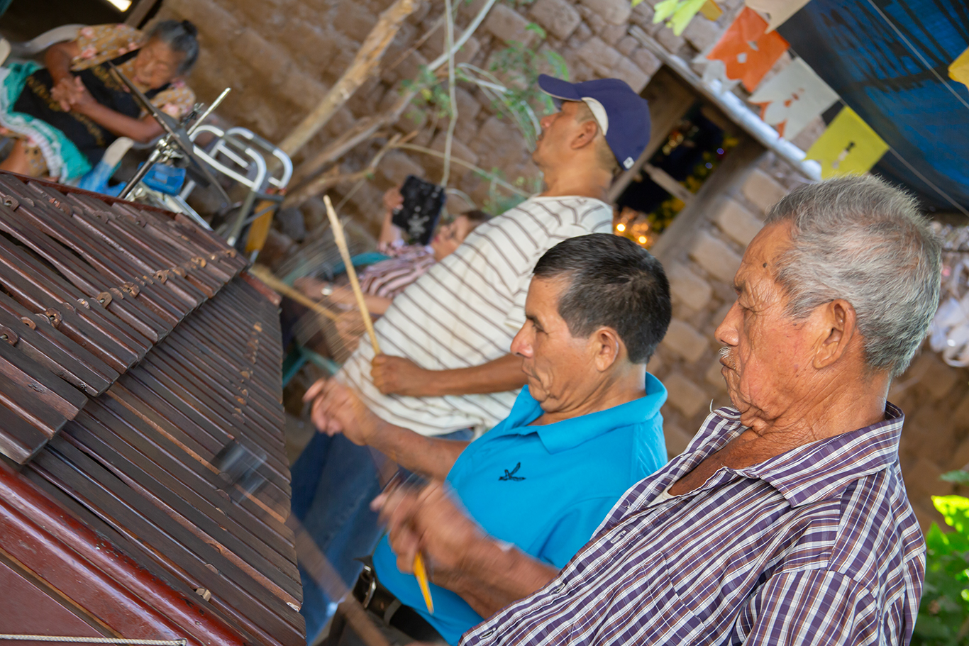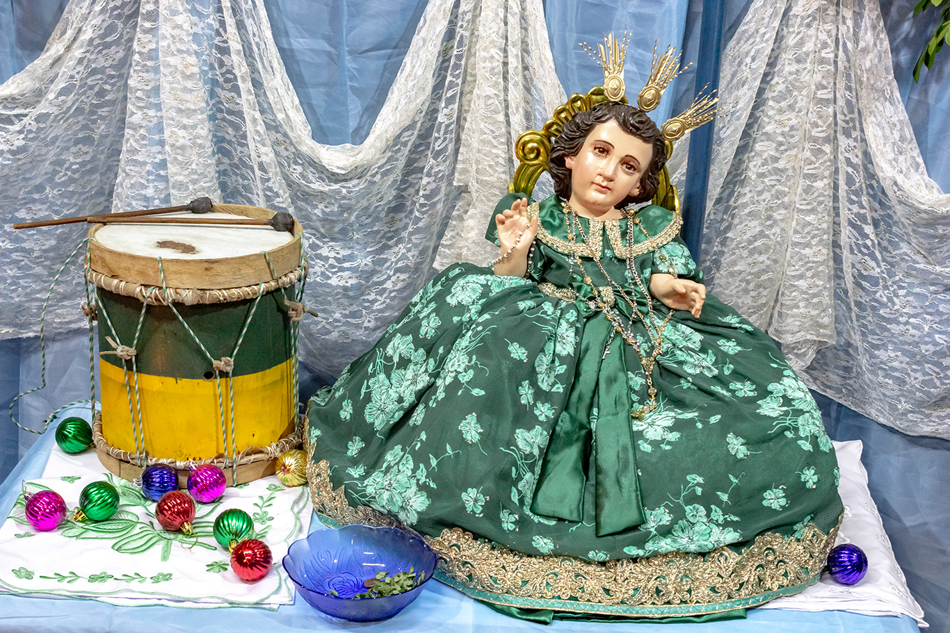 Ese mismo día, a las 4 de la tarde daba inicio “el Tabal” o “¡Jéu!”, que se acompañaba de la tradicional zambumba y la quijada de burro -consultar escrito dedicado a esta expresión de los izalcos-; esta actividad finalizaba justo enfrente del Templo Parroquial de Nuestra Señora de la Asunción, a la medianoche donde se rendía culto al Niño Dios de Belén recién nacido. Un suceso lamentable acaeció tras la Navidad de 2010: el muy antiguo Niño Dios de Belén, titular de esta Mesa Altar fue hurtado de los recintos de la cofradía, desconociéndose todavía su paradero. Ante esta carencia, un grupo de grandes izalqueños liderado por Israel Antonio Texin -quien realmente funge como Mayordomo de la Virgen-, tomaron acción y tras muchas dificultades y pedir ayudas en el pueblo, en octubre de 2017 encargan la talla de un Niño Dios de Belén, siendo su artífice el escultor izalqueño José Pashaca.