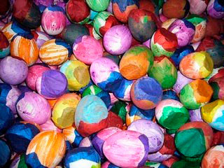 de zapatos para embadurnar a los demás, la fiesta era siempre a base de cascarones del huevo pintado con colores de anilina, repletos de viruta