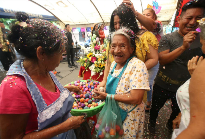 dentro de los cascarones y al momento de empezar a reventárselos en la cabeza, como es la costumbre, se armó un gran alboroto por la picazón y