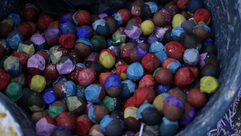 multicolor, llenados a veces por los más transgresores, no únicamente con ceniza o harina, sino hasta con orines. Pero como fueren, había que