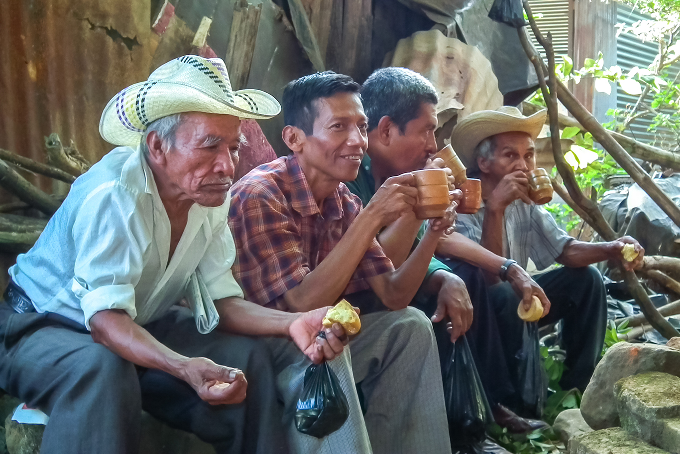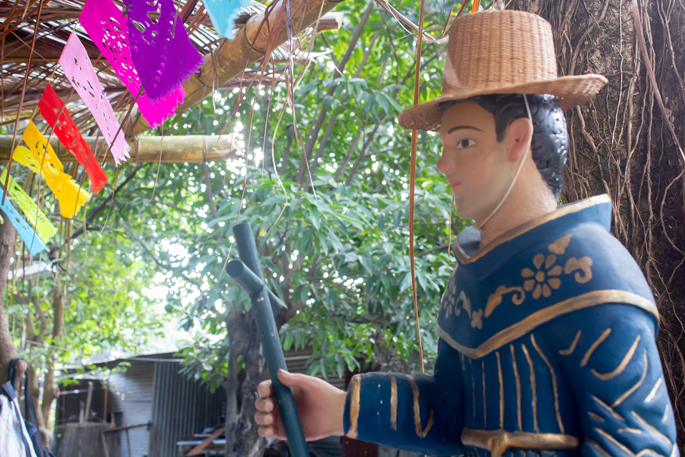 En la fiesta como en el resto de las del pueblo, se daba café, chocolate, pan de bollo, tamales y la infaltable chicha. Narra Doña Luisa que ella misma, con huacal de morro en mano, en otros tiempos invitaba a los presentes a disfrutar de “la huacalada”, para luego sacar a bailar al son de la marimba de arco, a todo aquél que aceptara su invitación. Asegura que San Diego, tenía un resplandor de plata muy hermoso, pero que cuando ella recibió la Mesa Altar, ya no lo tenía. Fue en los años ochenta del siglo pasado, cuando una devota que venía a visitar al Santo desde Nahuizalco, en agradecimiento por un favor recibido, decidió regarle un sombrero, el cual usa desde ese entonces. Sobre los dones de San Diego, su Ex Mayordoma asegura que es Abogado contra las miserias económicas, debido a que es muy menesteroso con las necesidades de los pobres y ante cualquier otro tipo de necesidades; cuenta que ella misma ha recibido milagros de este tipo.