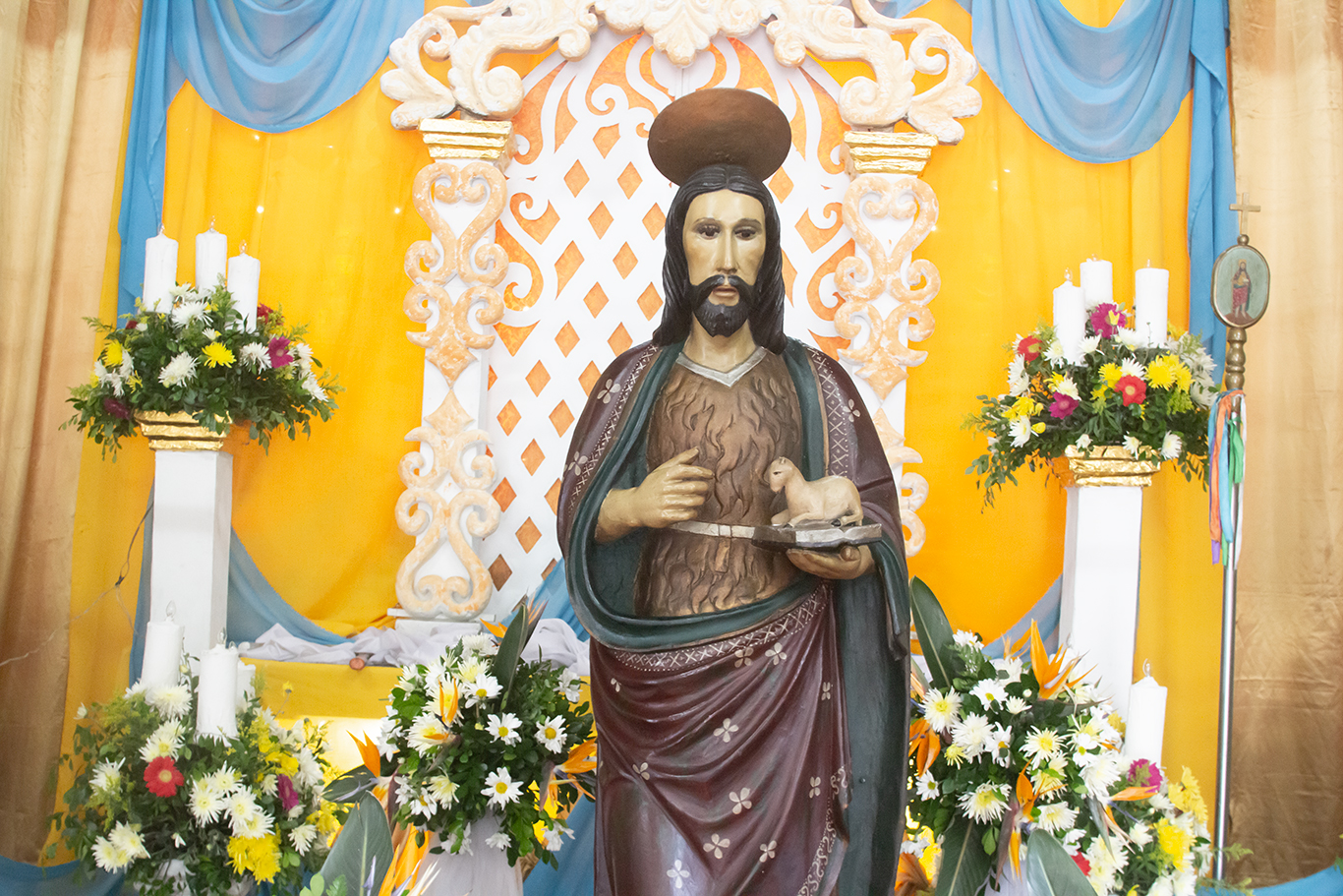 Desde tiempos inmemoriales, en Izalco se ha rendido culto a San Juan Bautista en el barrio que lleva su nombre hacia el Sur del casco urbano. Al desaparecer su cofradía a finales del siglo XX, tanto su Mesa Altar como su fiesta quedaron bajo la responsabilidad de la Sociedad de la Virgen de los Remedios. Su Mesa Altar, la complementan el Crucificado que la representa el Jueves Santo en la Procesión de los Cristos y su respectiva insignia. Podemos asegurar que la veneración a San Juan Bautista es muy antigua: “El 10 de diciembre de 1570, el curia vicario de Teçpan Izalco, Juan de Urrutia, a solicitud de la Real Audiencia, escribe una extensa relación, informando no sólo del estado de la obra de la iglesia de la Asunción, construyéndose en ese momento; sino que enumera los objetos litúrgicos con los que el templo ya cuenta, expone lo que falta en él y dice asimismo que [...] "tiene el dicho pueblo una ermita de sant juan y otra de sant gregorio que prové el pueblo..." SIC. El Rostro del Sincretismo, pág. 123.