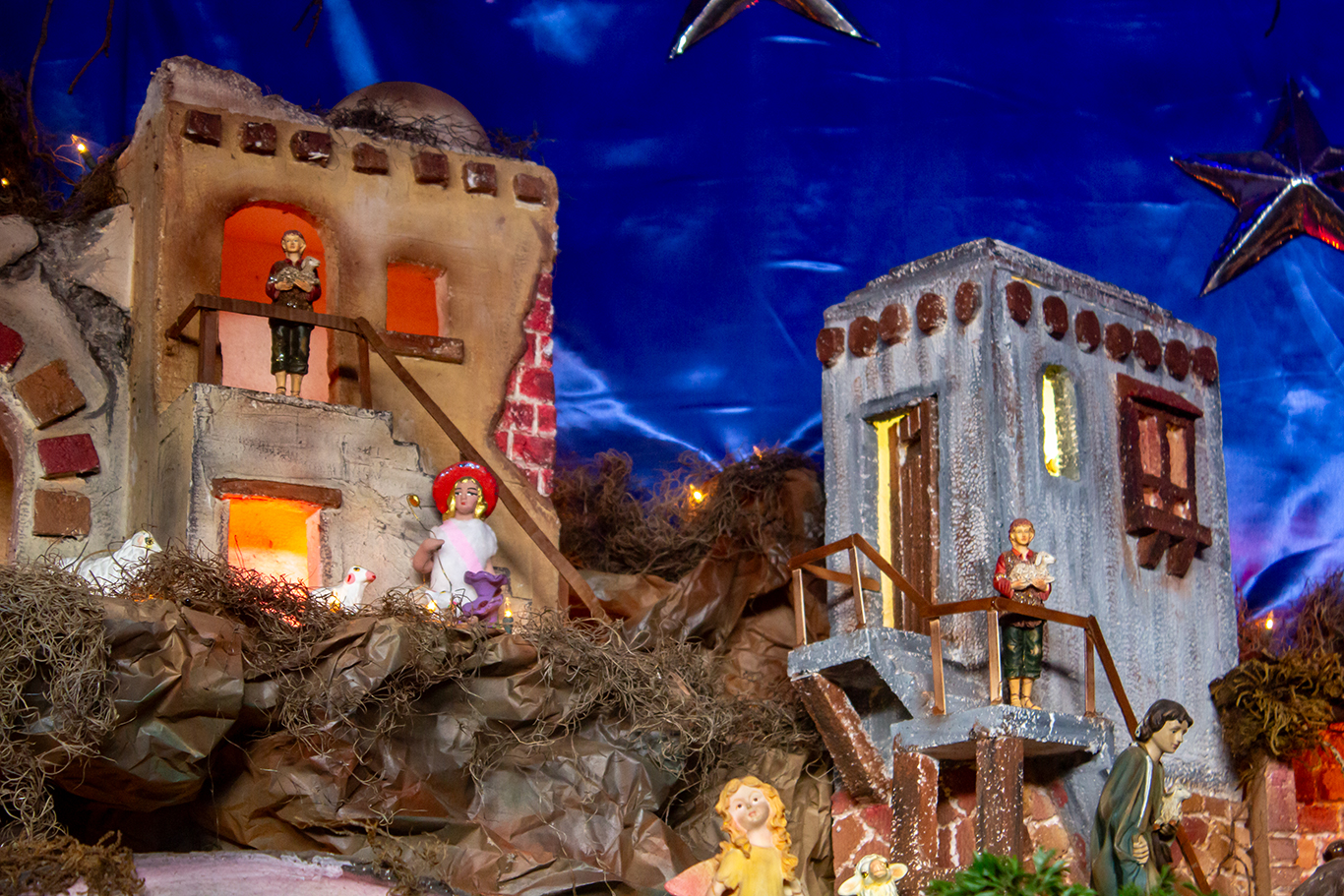 era de 6 metros de largo por 3 metros de ancho. Le preguntamos sobre los materiales empleados: “Mire, el Nacimiento de este año, lleva papel, cartón,
