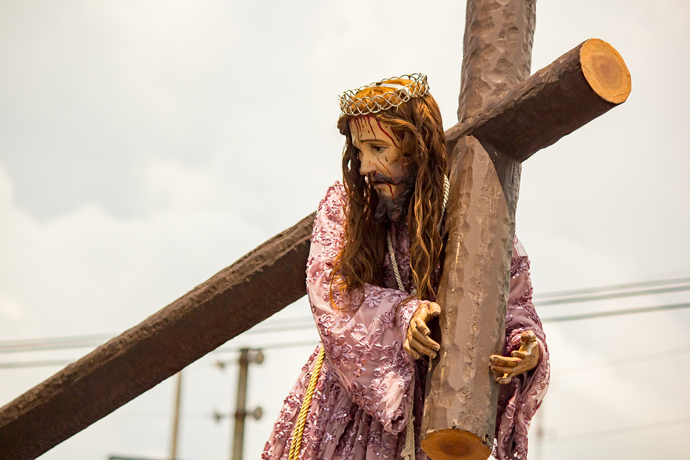 Es decir que, al apreciar todo el conjunto “es el Señor el que camina con la Cruz”. Baste el ejemplo del “Gran Poder” en Madrid y el de Jesús Nazareno de la Merced en la Antigua Guatemala quien, en pleno Viernes Santo, luce su túnica lisa sin ningún adorno llegándole justo a los tobillos, mostrándonos su Hermandad la correcta forma de vestir a estas bellas imágenes; “Jesús Camina por las Calles Empedradas”, dicen muy orgullosamente los antigüeños. Las cabelleras dejaron de tallarse y se procedió a colocar a todas las obras escultóricas el respectivo cabello natural o en algunos casos era sintético, el cual generalmente deberá ser “colocho” o de “canelones”; salvo pocas excepciones, se les ve con cabello liso. Esto se observa más que todo, en aquellos Nazarenos que son sujetos de veneración por población de origen indígena y por ello no nos extrañe que nuestro Jesús Nazareno, no sólo tenga una cabellera bastante lisa, sino que también caiga hasta el nivel de su cintura. Por todo esto, desde hace mucho tiempo son cientos los casos suscitados, donde en señal de agradecimiento por algún favor recibido, un devoto ha tenido la dicha de ser el donante de la cabellera del Señor.