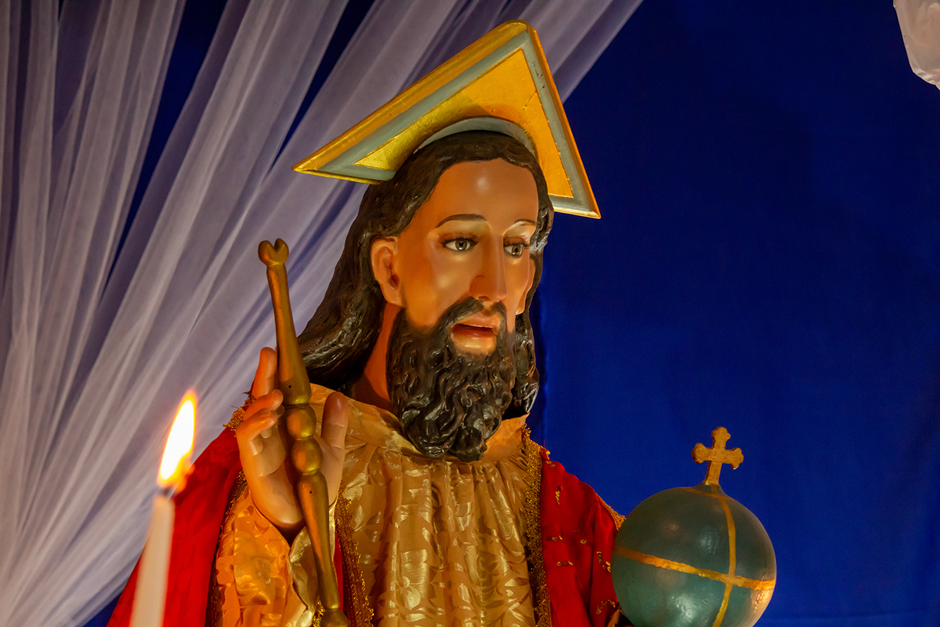 La Imagen del Padre Eterno Santísimo sostiene un orbe en su mano izquierda. Para nuestros abuelos representa el fruto del árbol de morro, el cual tiene mucho significado místico relacionado con la creación de la vida y según ellos, el cetro que ostenta sobre su mano derecha representa la Vara del Poder del Alcalde del Común, con el que ejerce su autoridad.