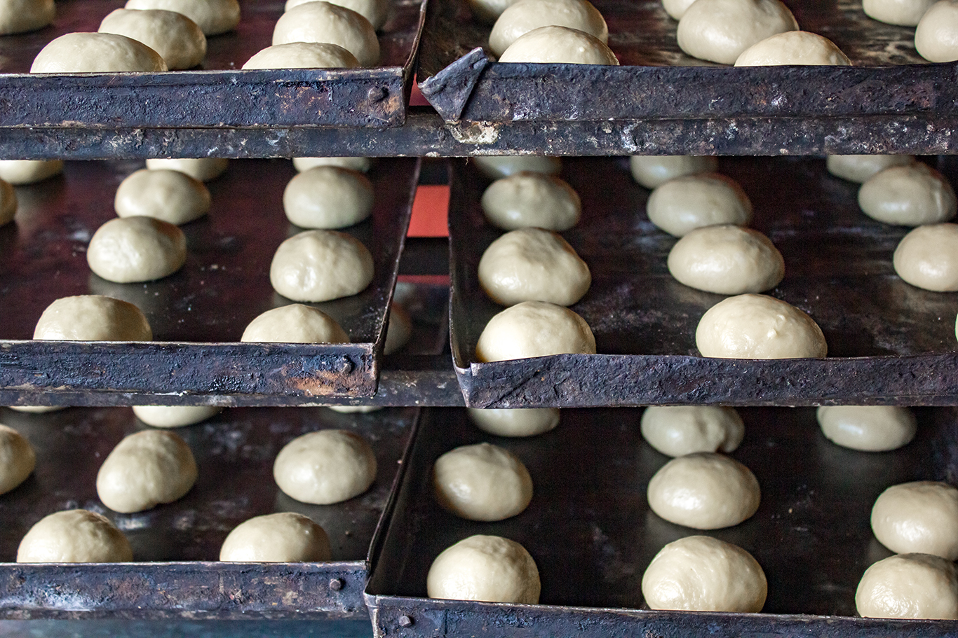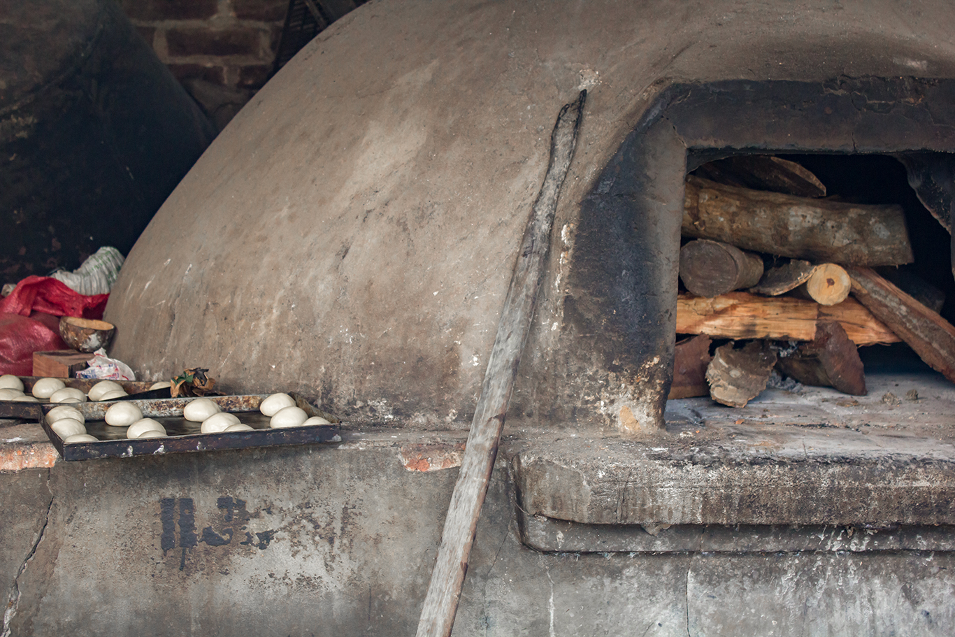 Tras unos 15 minutos, los rescoldos se retiran y se colocan en la zona de la tronera, la cual es una pequeña ventana de escape de calor. Acto seguido, se “barre” el suelo del horno. Todo esto, con la puerta del horno abierta, ya que es necesario bajar la temperatura la cual es excesiva en ese momento. Luego se deja “reposar” con la puerta ya cerrada y acá inicia la pericia del conocedor, quien debe saber calcular la temperatura correcta antes de meter el pan. Muchos hacen uso de una tusa que, al ser introducida en el horno, ante su reacción del calor, indica si ya se puede hornear o no. Otros, prefieren incluso meter la mano y parte del brazo para realizar el cálculo. Cuando se ha determinado que la cantidad de calor es la correcta, se procede a la horneada y si las cantidades a cocinar exceden la capacidad del calor óptimo, entonces se procede a alimentar el horno con más leña haciendo uso de la tronera que también sirve a este propósito. De igual manera, esto requiere de un cálculo preciso para no sobrecalentar el horno. Ya esta etapa de la horneada se realiza con la puerta y tronera cerrada para evitar la fuga descontrolada de calor. Con el afán de conocer el devenir histórico, nos abocamos a nuestra legendaria panadera, Marta Morán quien nos narra: