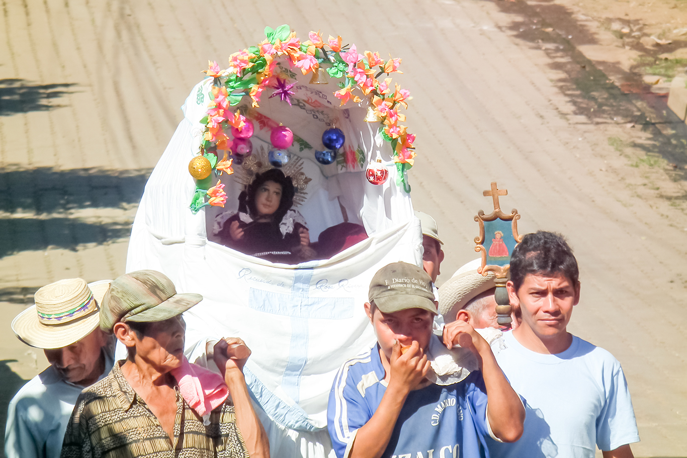 Narra la tradición oral que, tras el inolvidable terremoto de Santa Marta hacia 1773 y que dejara totalmente destruido el antiguo Templo Parroquial consagrado a Nuestra Señora de la Asunción, fue necesario rescatar las imágenes que habían logrado salvarse de la ruina. Dicho templo contaba con mucha imaginería contando el infaltable “Misterio” o “Sagrada Familia”. El terremoto dañó las efigies de San José y María, quedando solamente a salvo la figura del Niño Dios. Por decisiones de la curia en ese tiempo, se tomó a bien que las imágenes que habían podido salvarse de la tragedia, fueran llevadas a las casas de los lugareños mientras era construido el nuevo templo. Al ser erigido, resultó ser que las imágenes no fueron devueltas quedando en manos de los lugareños quienes, a esas alturas, tenían ya bien cimentadas las respectivas Cofradías de las efigies ahora en su poder. Para el caso de nuestro citado Niño, ocurrió que los izalcos erigieron una cofradía para su culto y devoción. Relatan los ancianos que esta Mesa Altar anduvo errante por el barrio de San Sebastián y que también estuvo anexa a las Cofradías de Santa Lucía, Justo Juez por último a la de San Gregorio Magno; actualmente goza de cofradía propia. La historia recuerda a Gonzalo Musto, Macedonio Pinte, Ana Morón de Musto como Mayordomos de esta Mesa Altar.
