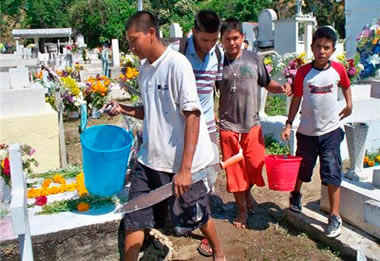 Niños que preguntan por los abuelos que nunca conocieron, madres que limpian con ternura la lápida de un hijo, hermanos que colocan el pan de muerto