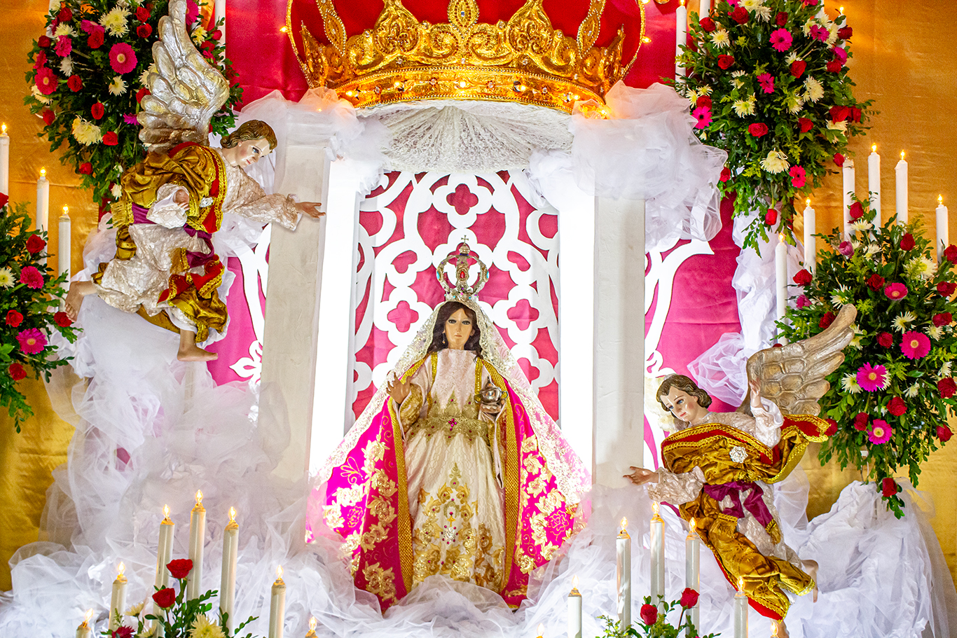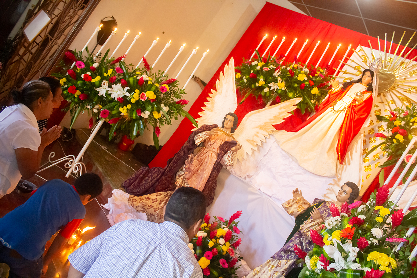 Frente al singular camarín, la “Doctora” luce sus mejores galas en su Altar de veneración; es difícil cuantificar el entrar y salir de sus devotos al interior de la ermita. Hacen sus peticiones por sus hijos enfermos o un ser querido, colocan sus velas con mucho amor y fe. Vemos mucha devoción y constatamos el tremendo valor religioso de esta Imagen, visitada durante todo el año por las mismas razones. En las afueras de estos decenarios recintos, los cohetes de vara invitan a la fiesta que es de todos y para todos, sin ninguna distinción. Amanece el día 15. Son las 5 de la tarde y se ha llegado la hora. Los feligreses se reúnen a la espera que se abran las puertas de la ermita. Sale la “Doctora” en su anda procesional para visitar a todos los izalqueños que esperan su paso hasta retornar en horas de la noche. El día 16 a tempranas horas, se realiza la Santa Eucaristía en su honor. Así las cosas.