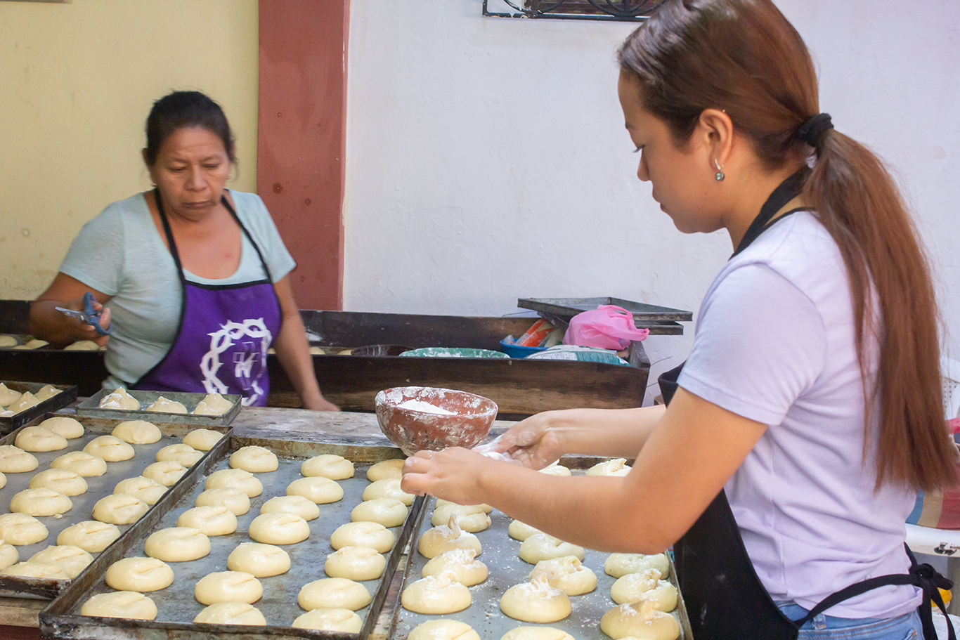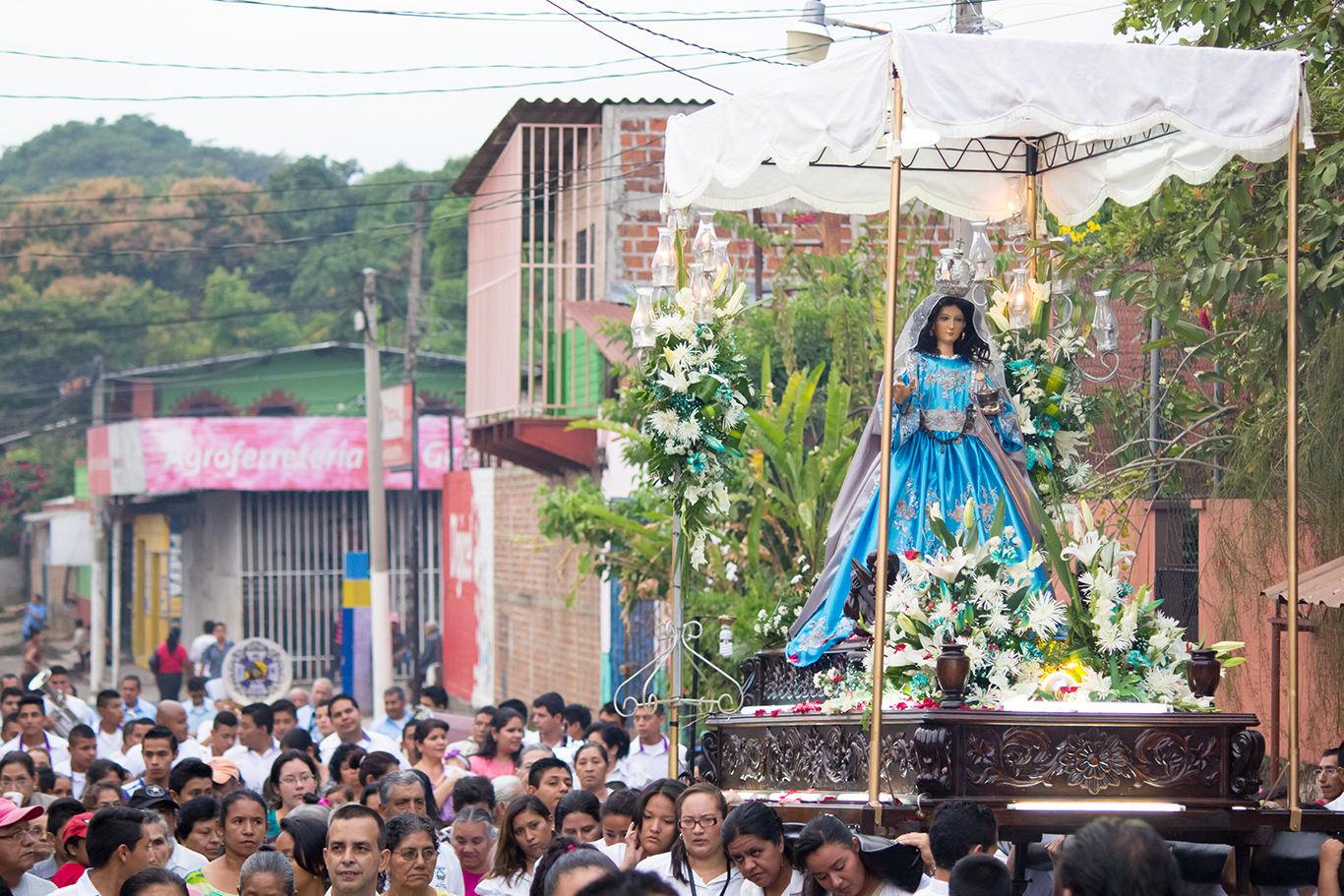 Vemos en nuestra izalqueña mucha seriedad y sin vacilar agregó: "Sólo pídale y no necesitará andar gastando en doctores y medicinas". Así, con esa sencillez y convicción, los izalcos creen en la “Doctora de Izalco” y por eso es digna de mucha veneración. El día 14, bajo la ramada tradicional ambientada con la infaltable marimba de arco, desfilan ante nuestros ojos las múltiples “Entradas” de devotos de muchas partes de la zona; llevan granos básicos, harina de pan, cacao, gallinas -algunas en la tradicional palanca-, cerdos, contribución económica, pólvora y todo lo necesario para ayudar con la fiesta. Sobresale la tradicional entrega del toro adornado, ofrendado de manera especial por un devoto. En el costado Norte, mujeres y hombres trabajan sin descanso ayudando con los quehaceres y atención al pueblo presente. Del horno sale el olor inconfundible del pan de bollo, listo para el deleite de propios y extraños.