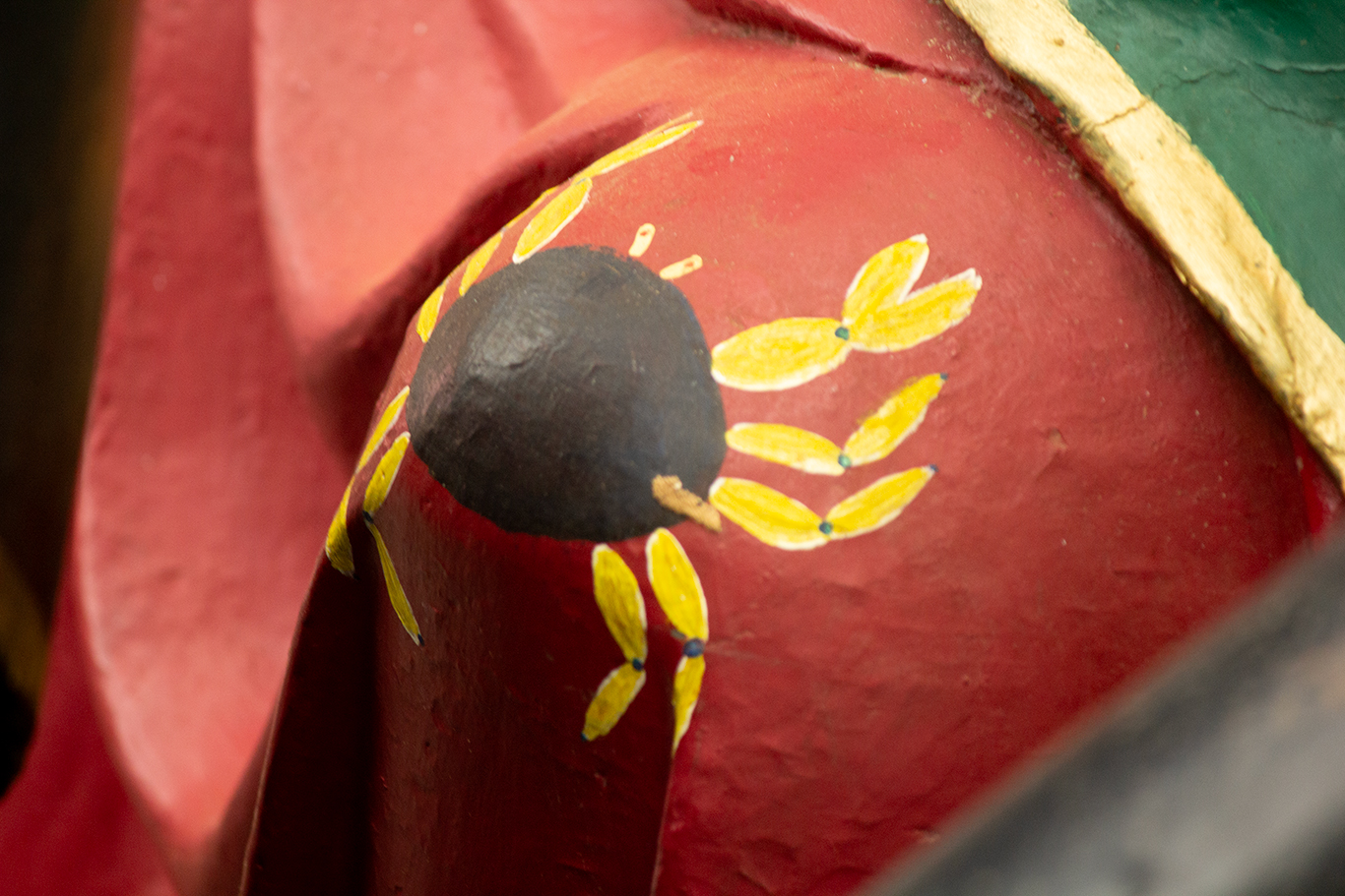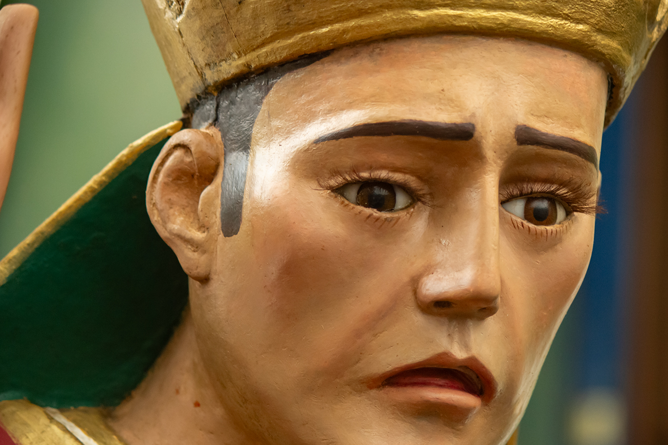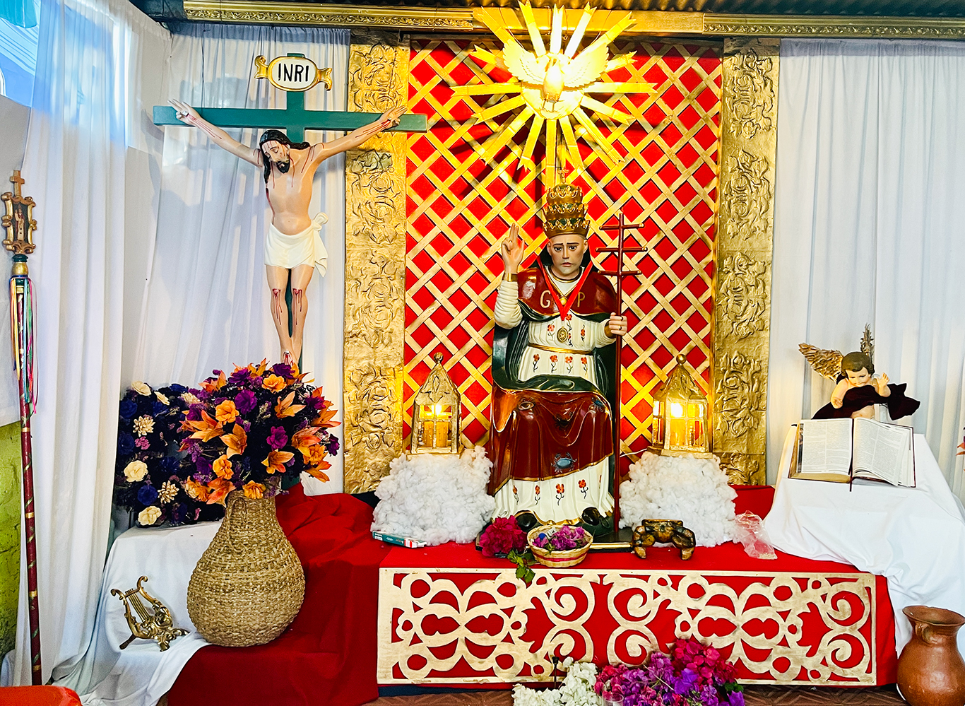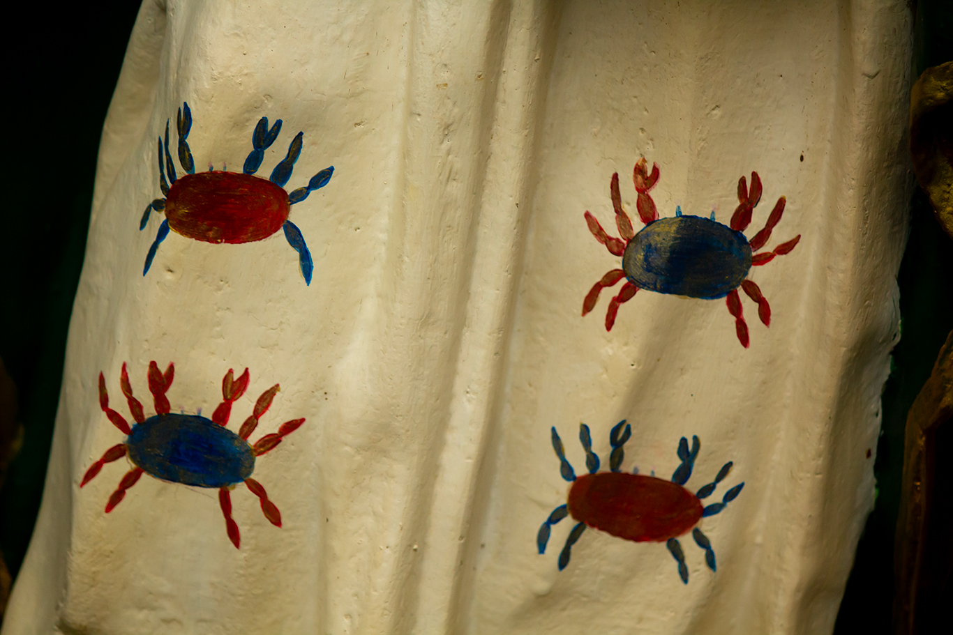la Iglesia. Sobresalen los cangrejos pintados en su manto. Esto último, obedece a que la comunidad indígena lo ha asociado a su cosmovisión, en la