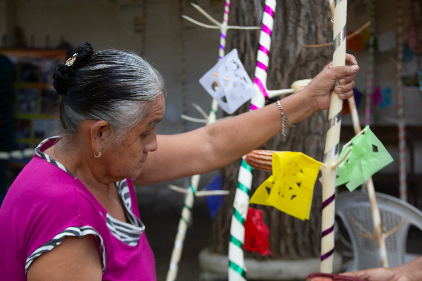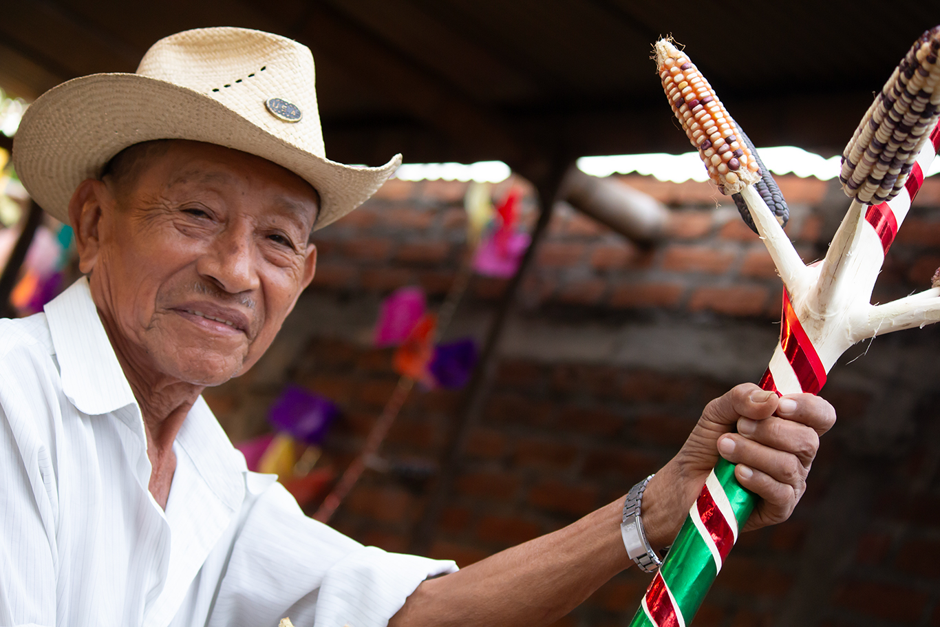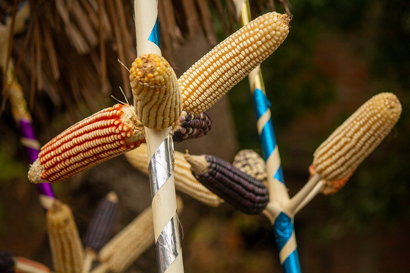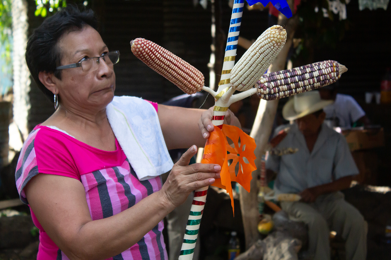 En el trasfondo constituye entonces un ceremonial dedicado a tláloc –deidad actualmente sustituida por la figura europeo-cristiana del Niño Dios- y en el que se pretende pedirle las tan necesarias lluvias para propiciar la cosecha del maíz. Con anticipación a la Pascua, los izalcos buscan el árbol de garrucha; cortan sus ramas y prefieren las que ofrecen la mayor cantidad de “manos” -a ciertos intervalos de sus ramas, nacen otras más pequeñas de su tallo central, en las más idóneas en número de 5-. A estas ramitas o dedos, las cortan de 10 a 15 cm. Las descortezan y ponen a secar al sol para que adquieran un color blanquecino. Luego, las adornan con cintas de papel lustre de distintos colores, entrelazadas circularmente; con criterio seleccionan las mejores mazorcas y las insertan en cada uno de los dedos de la mano que forman “la garrucha”. El maíz seleccionado es de distintos tipos: negro, amarillo y overo –blanco y negro-, según la cosecha que se ha de esperar. La idea primordial, es que estas semillas sirvan de ofrenda al Niño Dios y que se usen en las Cofradías donde la garrucha será obsequiada ya que, al considerarse sagradas, con ellas se pide el agua buena y a la vez la bendición de las semillas que serán las que propiciarán el sustento diario.