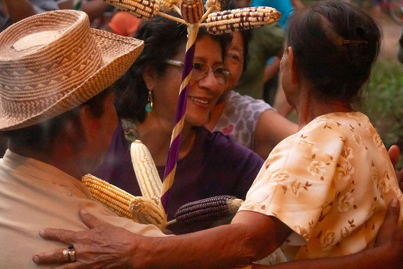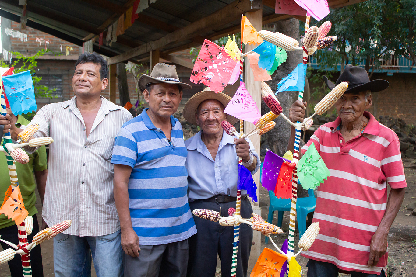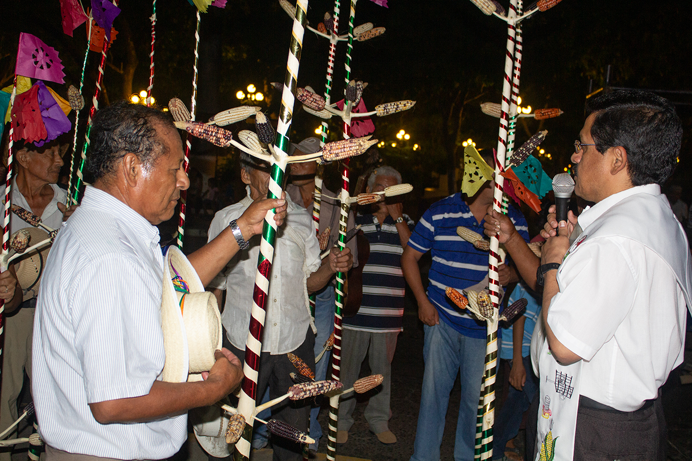 Esto se hacía para “dar cumplimiento” como era “el costumbre” y no finalizaba hasta alcanzar al 100 por ciento, la visita de todas las casas. Los otros 3 grupos, iban a los hogares de sus respectivos Cofrades con la misma idea. Antes de hacer la respectiva repartición, realizaban una especie de ceremonia que consistía en cantar el ¡Jéu! en la puerta de la cofradía, con un saludo especial. A esta actividad se le conocía como “botar los palos”. Recibida la garrucha, los Mayordomos procedían a colocarlas en la entrada de la cofradía. Las visitas en la mayoría de los casos requerían muchas horas al punto que “se amanecía” entregándolas. Narran algunos investigadores que, en tiempos de principios de la Colonia, los Izalcos se reunían en un lugar secreto para celebrar un ritual que duraba varios días considerados sagrados; ambientando con la quema de copal, prendían una mecha de sebo a su “Imagen”, hacían oraciones mientras desgranaban las mazorcas que se les había entregado el 24 de diciembre. Este maíz lo cubrían y lo escondían, para que “no lo tocara ninguna falda de mujer” ya que creían que, si eso pasaba, las milpas no serían fuertes y, por lo tanto, las cosechas serían malas. Los primeros días de febrero se iniciaban las siembras. Actualmente los miembros del Común dicen no saber sobre este tipo de ceremonias.
