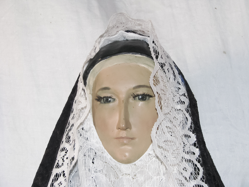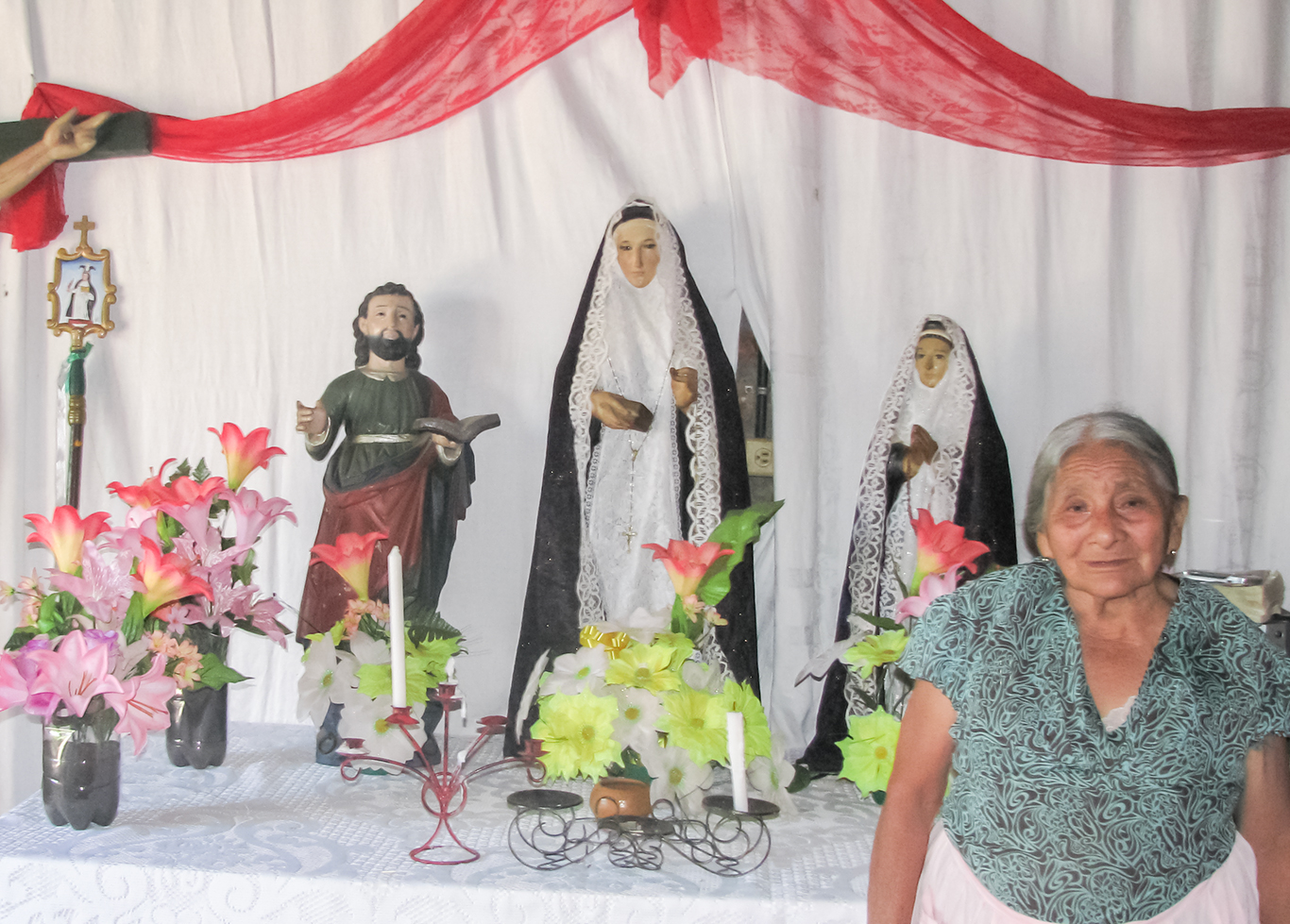 Narraba que en el inventario había dos tambores, uno grande y otro pequeño que, acorde a las tonadas la Santa era conducida hacia el Templo Parroquial de Nuestra Señora de los Dolores a presidir la Misa en el día de su fiesta, cada 15 de octubre. En cuanto a los dones de Santa Teresa, relataba: "Santa Teresa es muy milagrosa, especialmente con las mujeres embarazadas; a Ella le gustan los niños y por eso muchos de los cipotes del barrio, pasan bastante tiempo acá durante todo el año, porque Ella los llama". Al igual que en otras Cofradías la Imagen es vestida por sus devotos, aunque es una talla de cuerpo completo y muestra en su iconografía, el hábito de las Carmelitas Descalzas de la que fuera fundadora. Respecto a esto refería que cuando niña no se vestía a la Imagen, sino que fue hace poco que las gentes del barrio en agradecimiento por un favor recibido comenzaron a regalarle vestimentas.