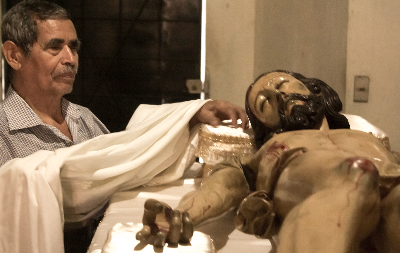 Y como uno siente el compromiso de ayudar, le dije que nos fuéramos para la iglesia y pasamos comprando una bolsita de algodón y con el permiso de Él, se lo pasamos así seco y se lo llevó. Al tiempo, volví a ver a Toño y le pregunté por el sobrino y muy entusiasmado me dijo que había sido algo maravilloso y muy milagroso. Por eso, se le da a los Socios y al pueblo; desde niño recuerdo que ya se daba. Hay tantas historias, como la del finado Pedro Canales ya que sólo él le podía hacer el nudo al Señor cuando ya estaba crucificado. Para mí, el Señor del Descendimiento es la imagen de mis amores, hoy que formo parte de la limpieza el Viernes Santo en la mañana, siento un gran respeto, le pido permiso para poderlo tocar. Pido sus bendiciones, me invade una gran emoción y si Dios y la Directiva me lo permiten, seguiré haciéndolo".